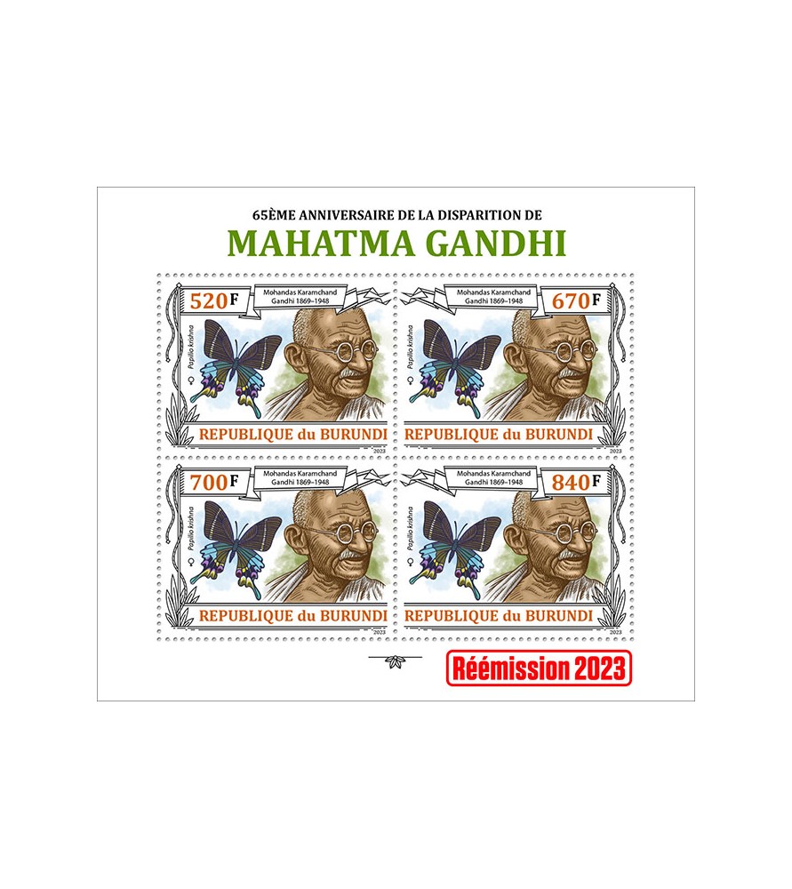 BURUNDI - 2023 - Mahatma Gandhi, Metulji - mala pola - ponatis (BU-23214f3)