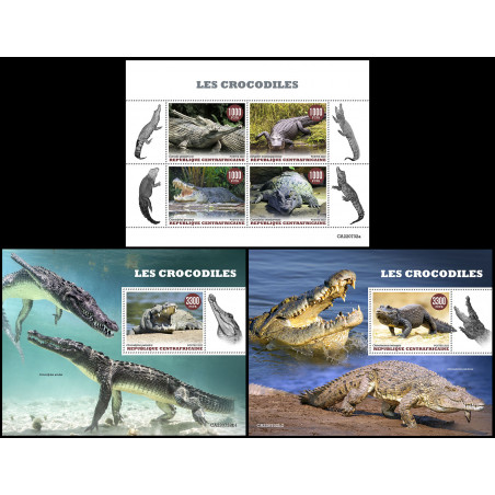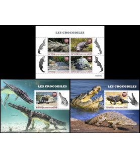 SREDNJEAFRIŠKA REPUBLIKA - 2022 - Krokodili - mala pola + 2x blok (CA-22732)