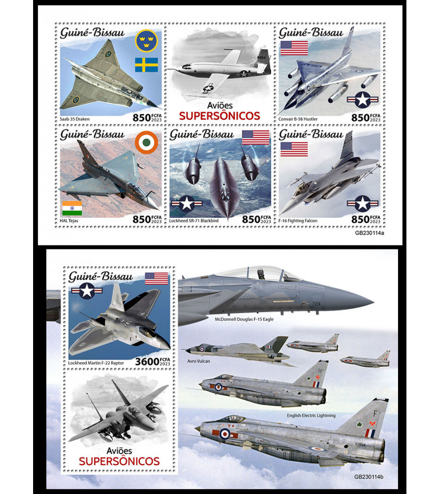 GVINEJA BISSAU - 2023 - Supersonična letala - mala pola + blok (GB-23114)