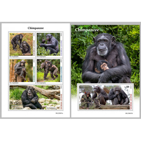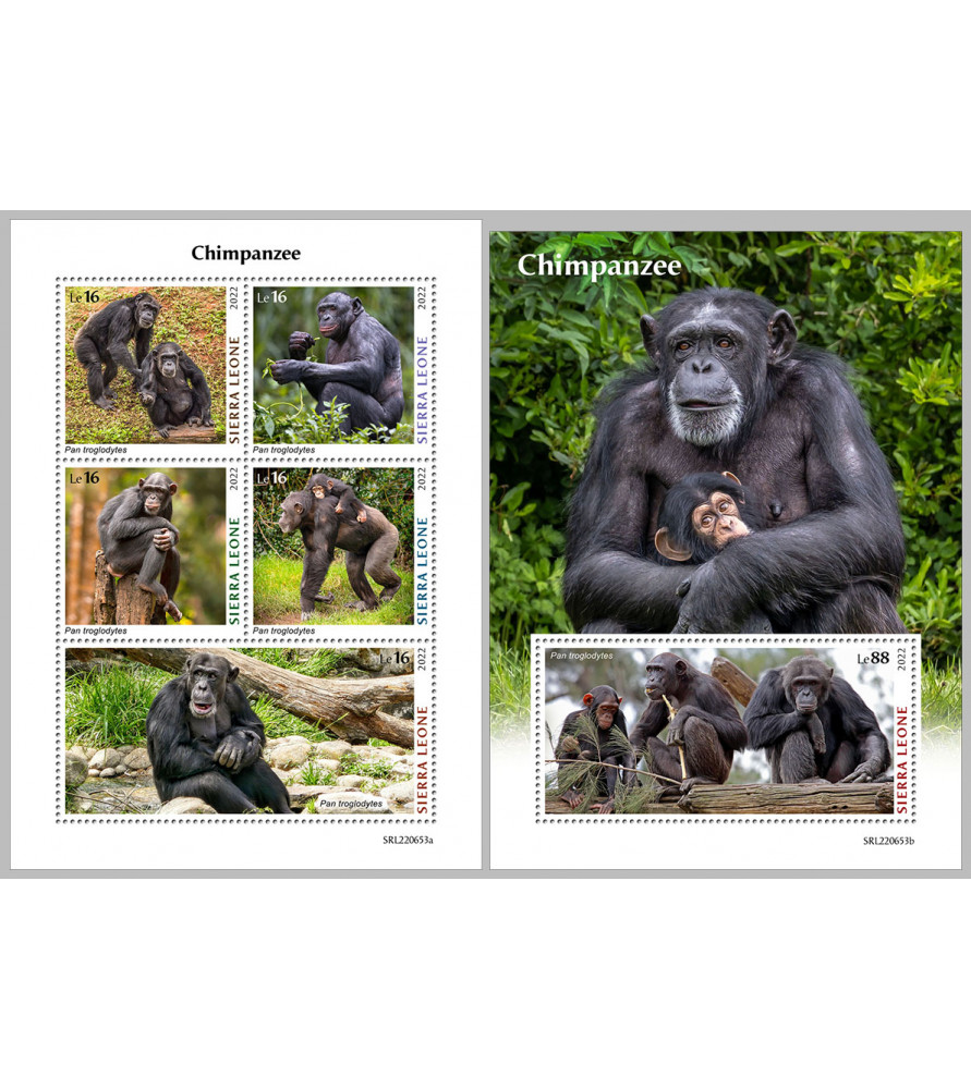 SIERRA LEONE - 2022 - Šimpanzi - mala pola + blok (SL-22653)