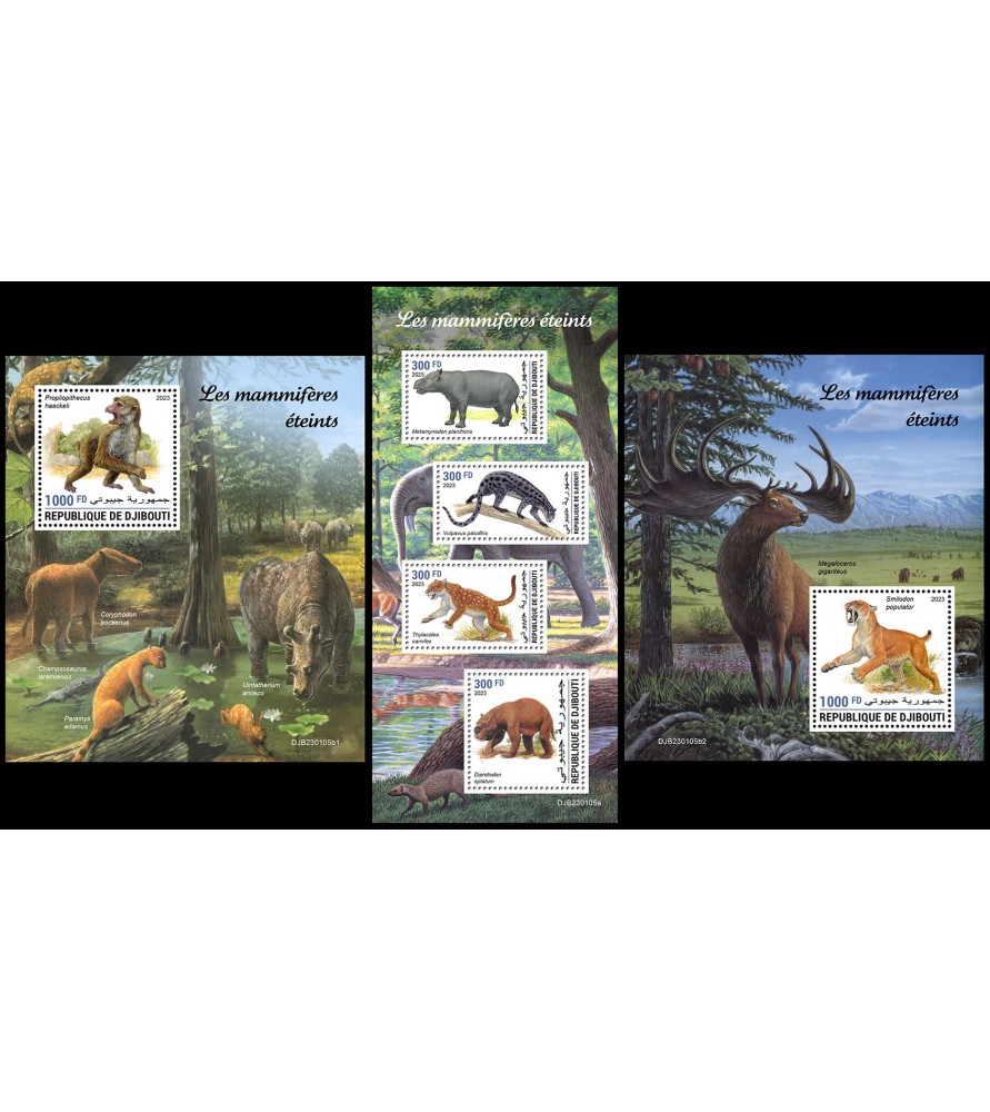 DJIBOUTI - 2023 - Izumrle živali - mala pola + 2x blok (DJ-23105)