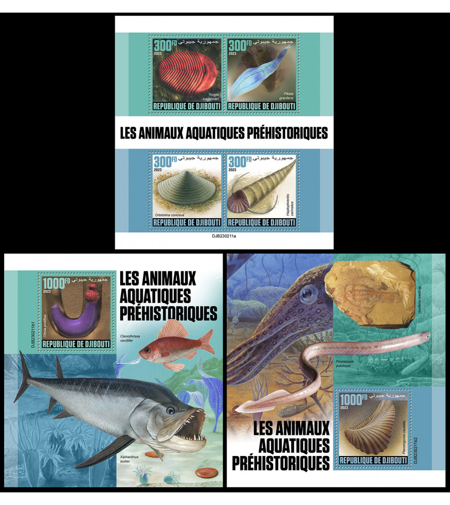 DJIBOUTI - 2023 - Vodne praživali - mala pola + 2x blok (DJ-23211)