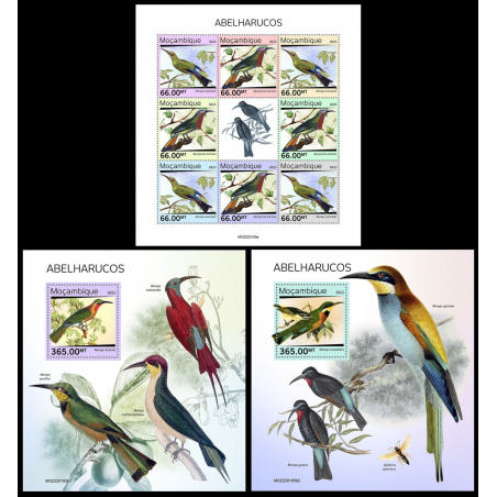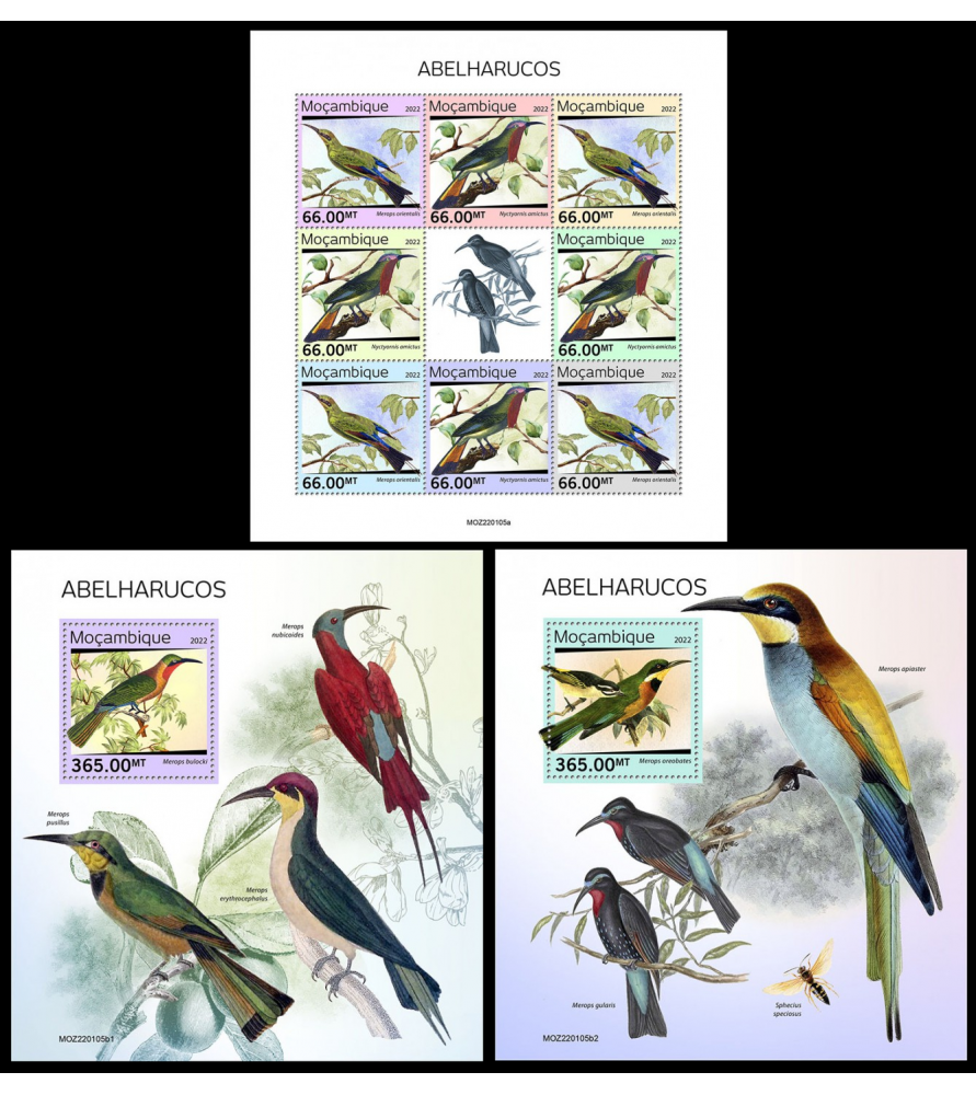 MOZAMBIK - 2022 - Ptič čebelar - mala pola + 2x blok (MZ-22105)