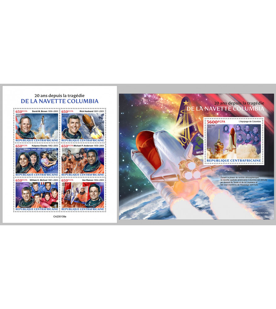 SREDNJEAFRIŠKA REPUBLIKA - 2023 - Vesoljska odprava Columbia - mala pola + blok (CA-23139)