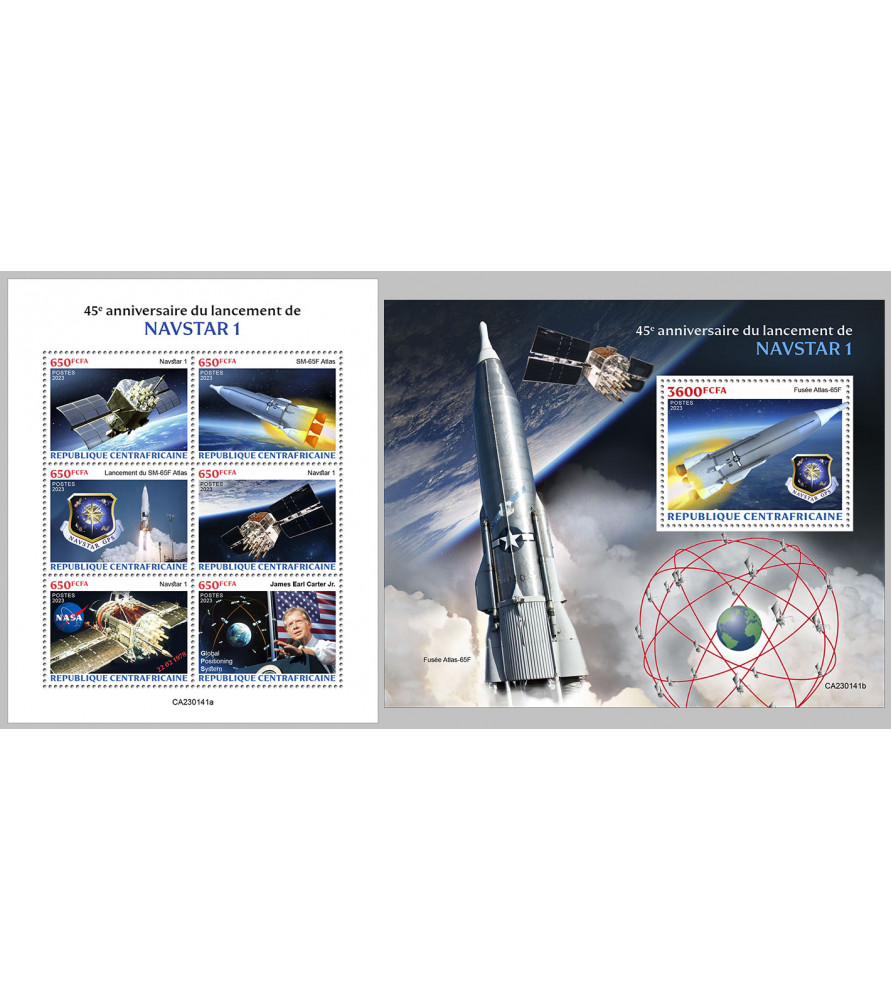 SREDNJEAFRIŠKA REPUBLIKA - 2023 - Vesolje, Navstar - mala pola + blok (CA-23141)