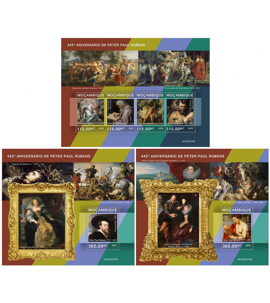 MOZAMBIK - 2022 - Pierre Paul Rubens - mala pola + 2x blok (MZ-22218)