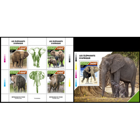 ČAD - 2022 - Sloni - mala pola + blok (CH-22206)