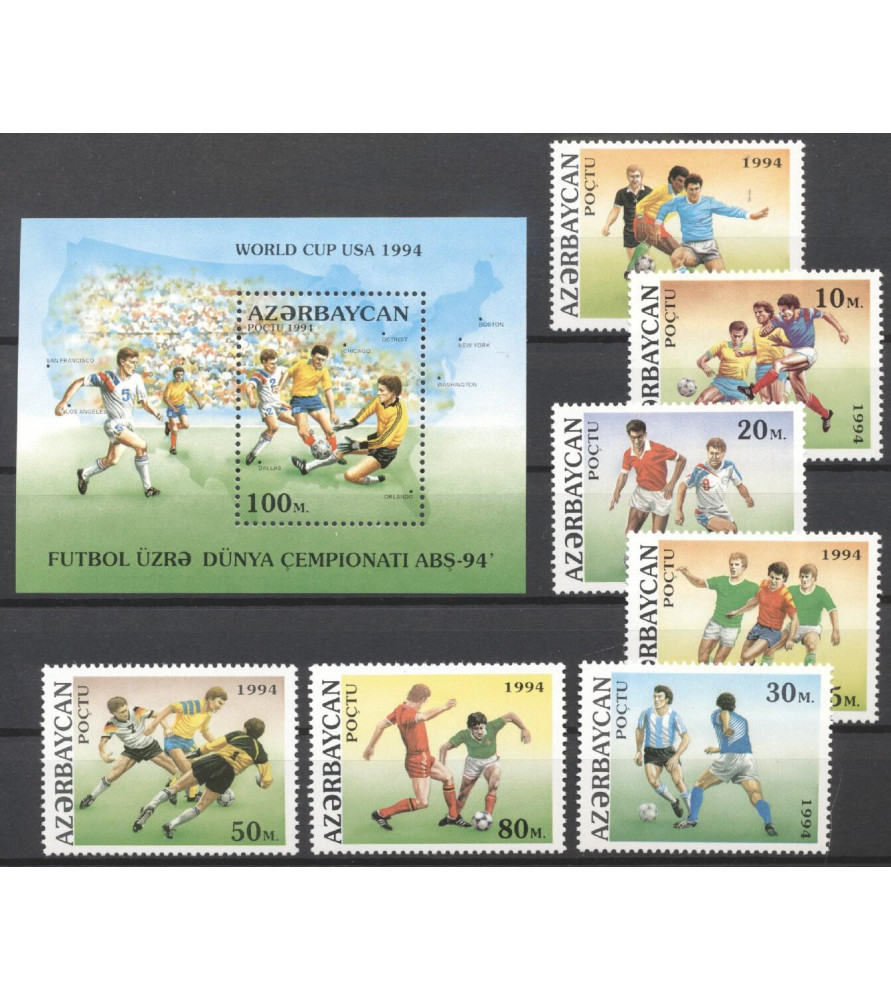 AZERBAJDŽAN - 1994 - Svetovno nogometno prvenstvo - Mi 140/146+BL 6 - serija + blok (NL 235993)