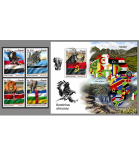ANGOLA - 2019 - Afriške živali in zastave - serija+blok (AN-19111)