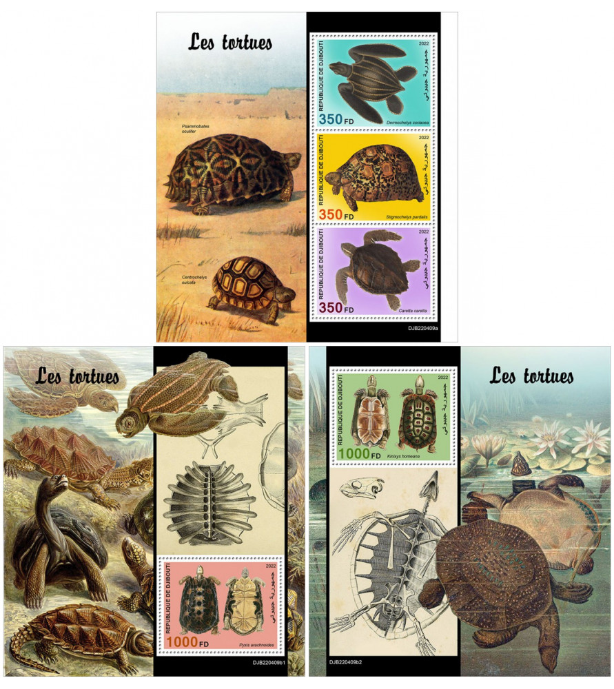 DJIBOUTI - 2022 - Želve - mala pola + 2x blok (DJ-22409)