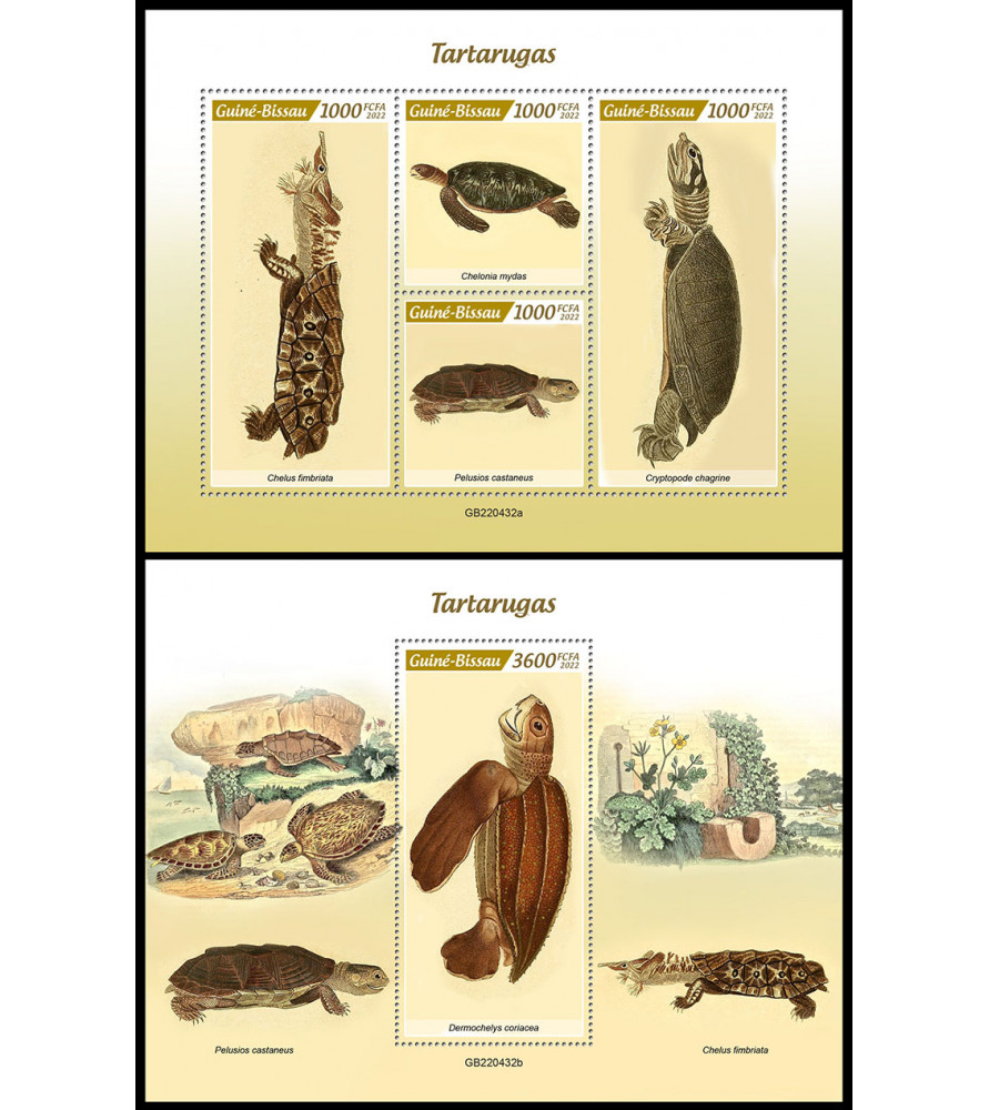 GVINEJA BISSAU - 2022 - Želve - mala pola + blok (GB-22432)
