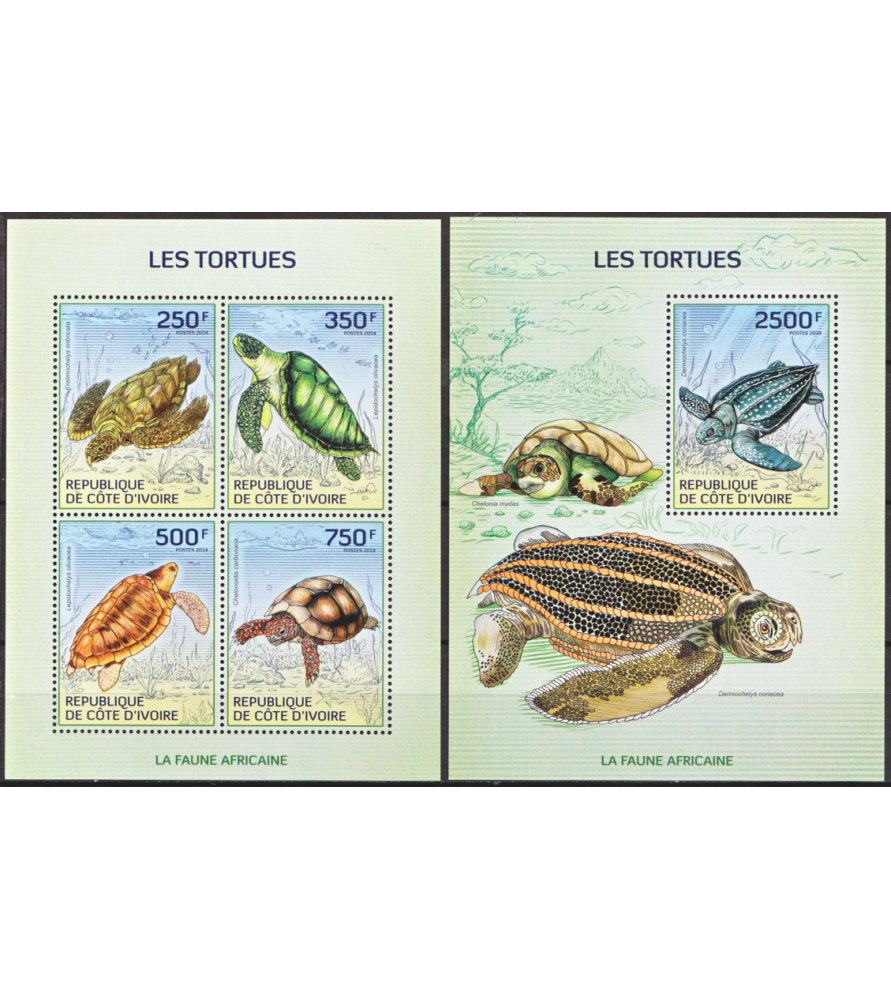 SLONOKOŠČENA OBALA - 2014 - Želve - Mi 1524/1527+BL 193 - mala pola + blok (IC-14121)